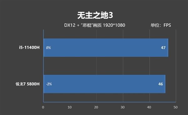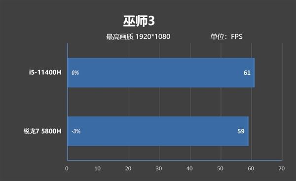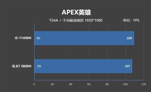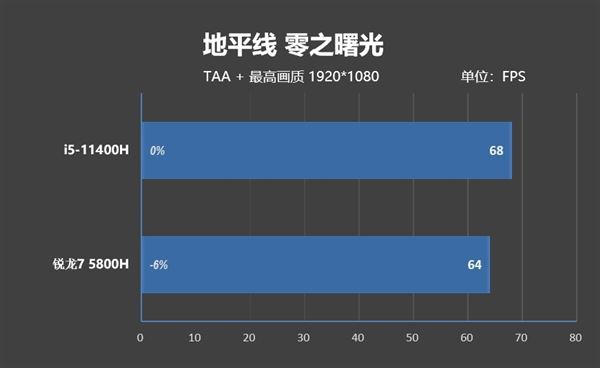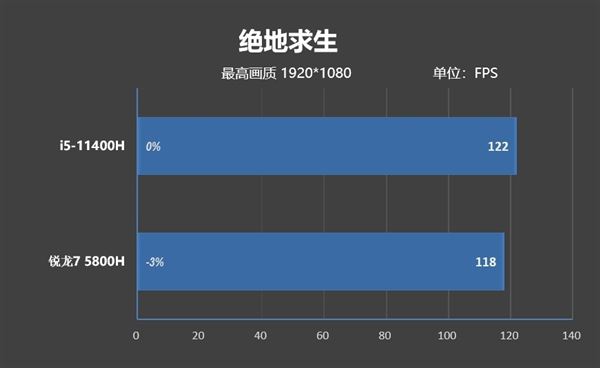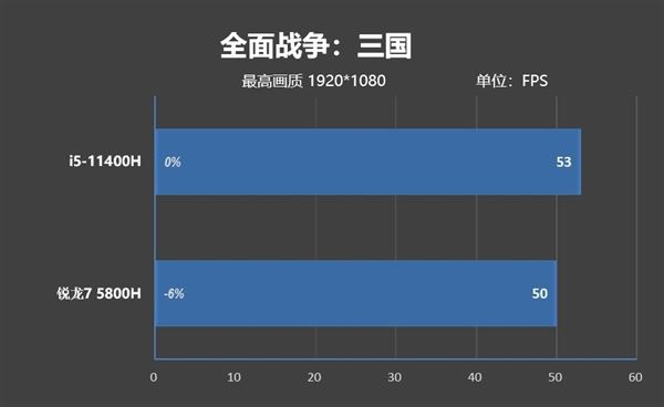 测试的结果还是稍稍偏离预期,原本以为二款处理器会是互有胜负,实测结果却是在17款游戏中,i5-11400h对锐龙7 5800h有13款游戏取胜、2款战平,落后的游戏只有2款。