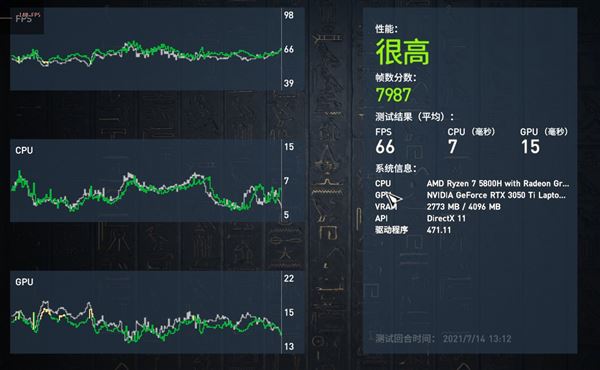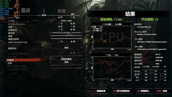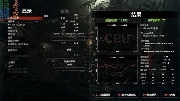 测试的时候将2台笔记本的驱动都升级到了最新的geforce 471.11,并都打开“野兽模式”与“独显直连”。