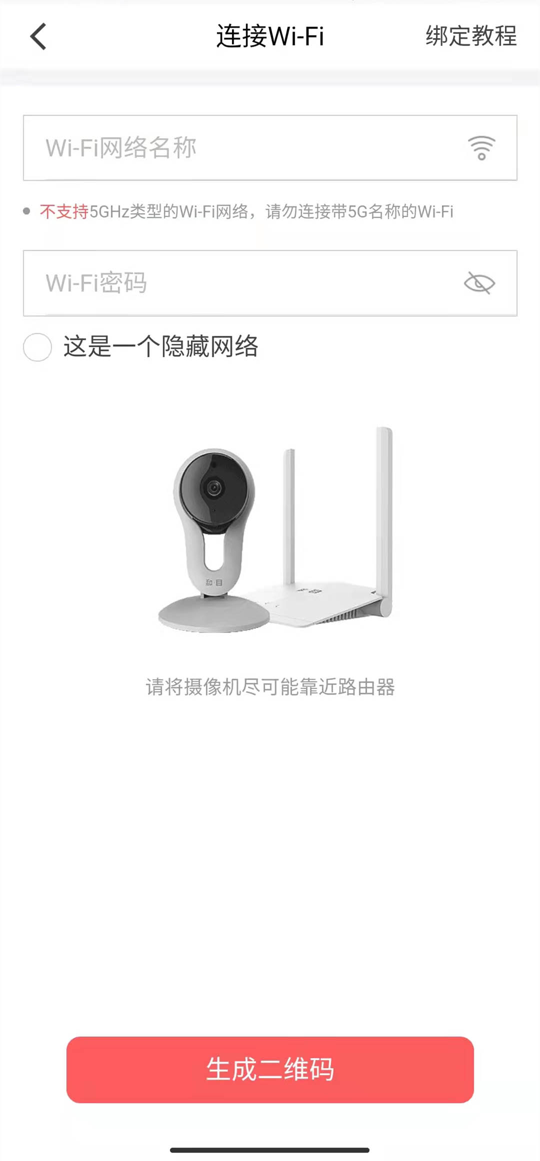 3、将wifi名称与密码输入进去,选择生成二维码,把二维码对着摄像头镜头进行扫码就可以了。