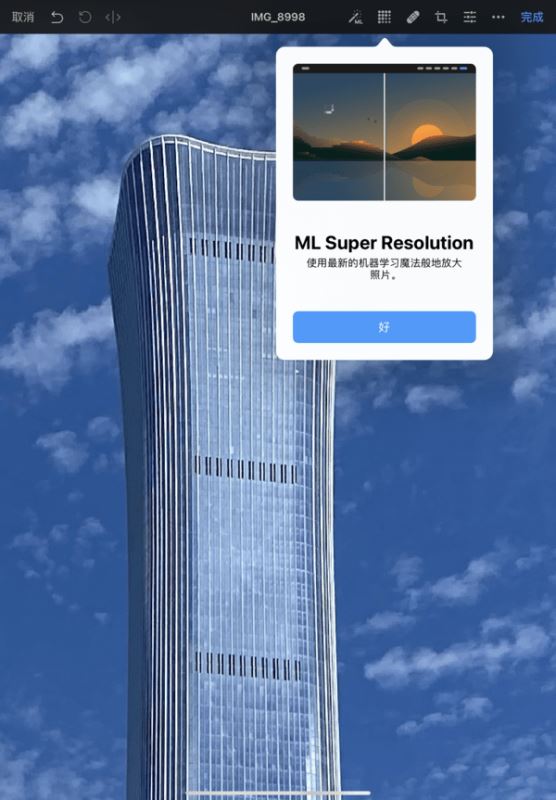 目前,很多应用程序也在利用a14仿生强大的机器学习能力,进一步提升我们的使用体验。例如图片处理工具pixelmator photo的ml super resolution功能,就利用了神经网络引擎的算力。处理一张看上去有些模糊的照片,只需短短几秒钟即可得到一张相对清晰的图片。
