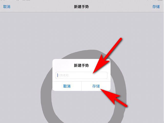 6、接着需要输入新建手势的名称,输入完成后点击存储即可