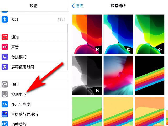 3、在设置列表中选择控制中心选项