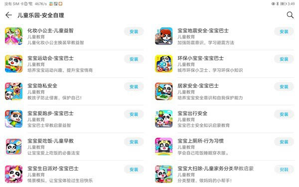在教育资源方面,荣耀平板6配备了儿童乐园,在延续上一代画板、录音、拍照等功能外,还贴心设计了多款儿童乐园主题界面,增加了“多重护眼”,全面呵护下一代的学习与娱乐环境,安全可靠。在儿童乐园内,家长可以进行时间管理、应用管理和内容管理,时间管理中还可以设定多个时间可用区间和禁用区间。
