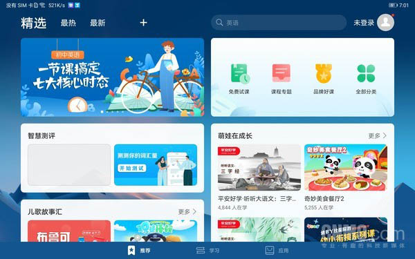 荣耀平板6还配备了教育中心app,与多家头部教育应用合作,推出k12基础教育内容,以学龄前、小学到高中课程为主,覆盖全阶段教学。比如学龄前:拼音识字、数学启蒙、英语启蒙,幼小衔接、习惯养成;小学:覆盖小学1-6年级,语文、数学、英语、课外兴趣等学科;初中:初中语文、数学、英语、物理、化学等学科;高中:高中语文、数学、英语等学科。应有尽有的教育资源让你随时都能学习,不会输在起跑线上。