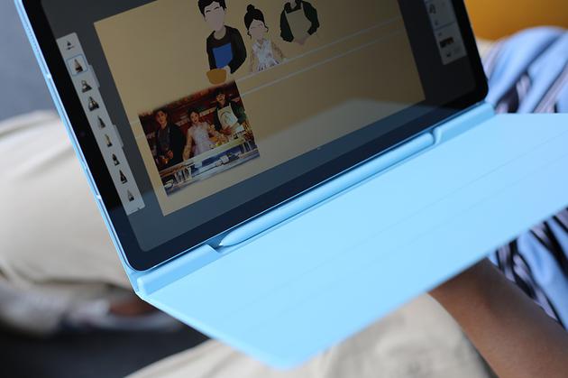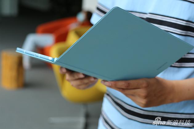 如果说,让我挑一个tab s6 lite外观最满意的地方,可能就是重量了。尽管配备了7000毫安时电池,重量却控制在465g(wi-fi)/467g(lte)。机身厚度也仅有7毫米。搭配官方保护套,就像是一个传统的笔记本又轻又薄,放在包里甚至可以忽略它的存在。