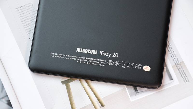 靠近底部的位置印有白色的字样,包含酷比魔方的logo、型号标识、技术参数以及制造商信息等,印刷占用的面积也比较大,看上去会少了一些精致感。