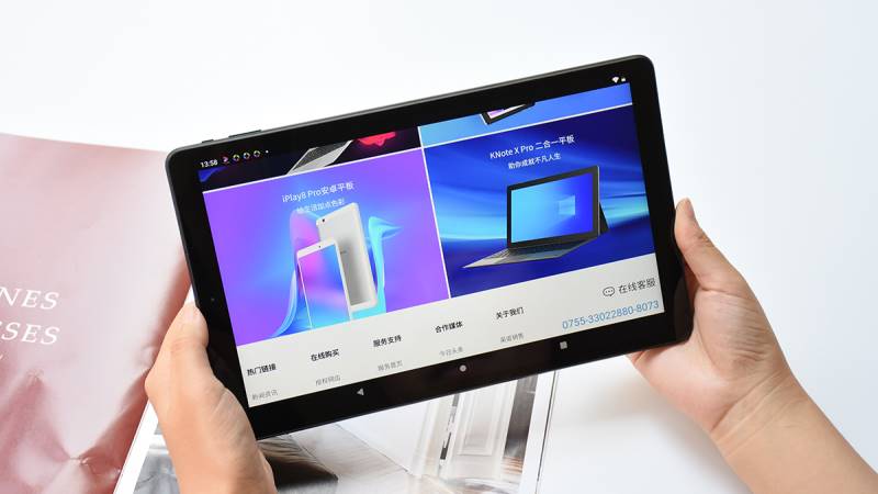酷比魔方iplay 20机身正面的这块屏幕尺寸为10.1英寸,屏幕比例保持在16:10,分辨率为1920*1200,也就是1080p+的级别。由于平板电脑的显示面积更大,我们日常使用平板电脑的观感距离要比手机远一些,在这样的情况下1080p的分辨率其实也并没有想象中的像素点满满,当然离近观察还是能看到像素点的,在斜边处会比较明显。