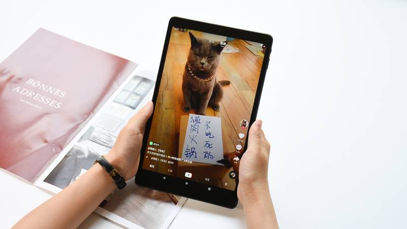游戏之余还可以借助这块大屏幕刷抖音、快手等短视频软件,画面非常清晰,视觉效果震撼。不过相对来说会稍微偏重一些,拿着时间长手腕会有些酸困,推荐坐在桌子前或是趴在床上用,也可以抱这坐在沙发上会比较舒服一些。