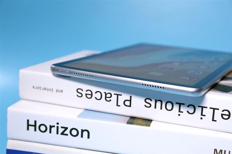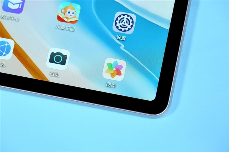 在边框的顶部,放置着荣耀平板v6的前置摄像头,在它的右侧还有一枚指示灯,熄灭状态下几乎不可见。
