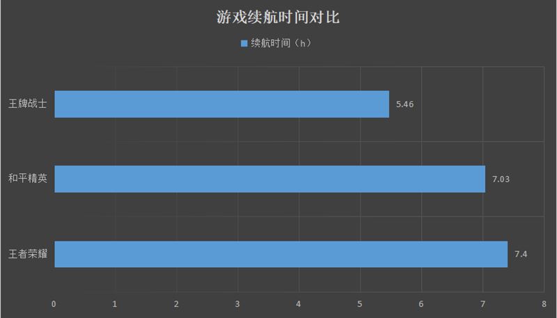 除了《王牌战士》续航时间较短外,无论是《和平精英》还是《王者荣耀》都可以达到7小时左右的续航。