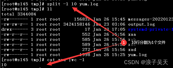 使用split -l 10 filename将文件分割为10行大小的文件,因为每一行的数据大小有差别,所以文件大小会有细微的差别。