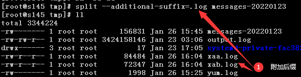 使用split --additional-suffix=.log filename给分割后文件名附加后缀.log。