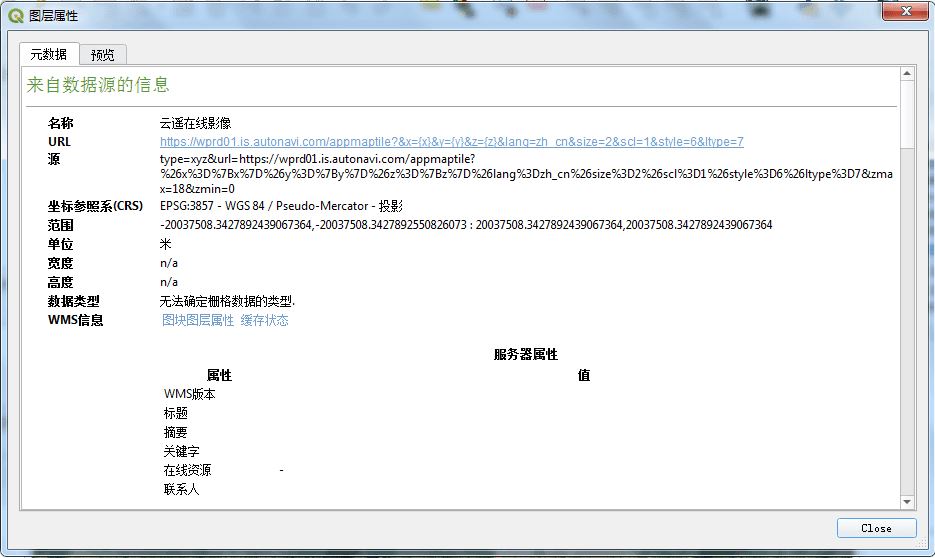 | 3 | 坐标参照系(crs) | epsg:3857 - wgs 84 / pseudo-mercator - 投影 |