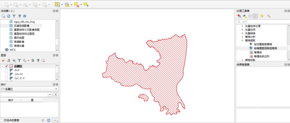 在qgis中打开岳麓区的空间范围数据效果如下: