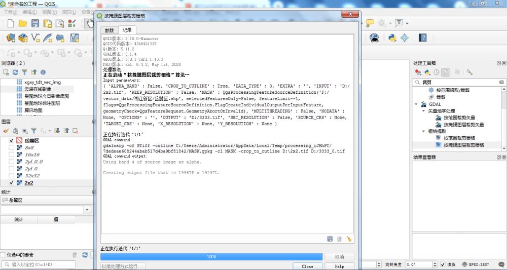 参数设置完毕后,点击运行,执行掩膜操作,可以在操作界面中看到以下的操作日志记录。