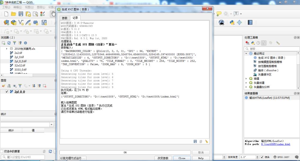 算法“生成 xyz 图块(目录)”执行已完成