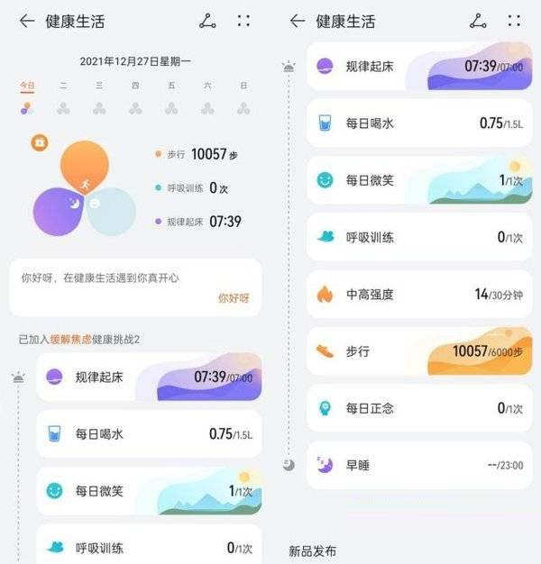 app里面的“健康生活”功能,我们可以选择自己的状态,通过完成规律起床、每日喝水、步行运动等等项目的打卡,培养我们的健康习惯。