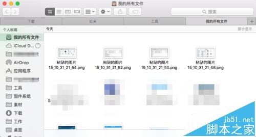 6、另外还可以通过键盘上的快捷按键在 finder 中新建一个标签页,按下键盘上的【command+t】这二个组合键就可以了。此时系统会默认在新标签中显示“我的所有文件”这个目录,如图所示