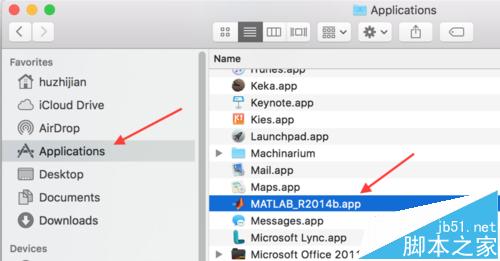 2、现在,打开finder,在左侧看到applications(应用程序),如下所示,找到matlab应用: