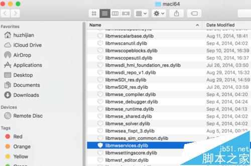 4、选择后,在出现的包内容中依次按照/bin/maci64/libmwservices.dylib路径,找到matlab安装后出现的文件,如下所示:
