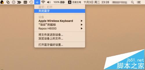 3、如果确定当前蓝牙设备的电源也是打开的,但就是不能与 mac 电脑系统正常连接的话,可以尝试先关闭 mac 上的蓝牙,然后再将其打开,看看是否可以正常连接。