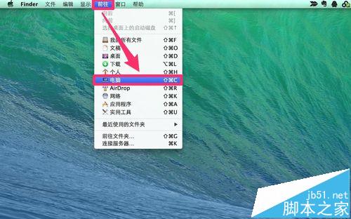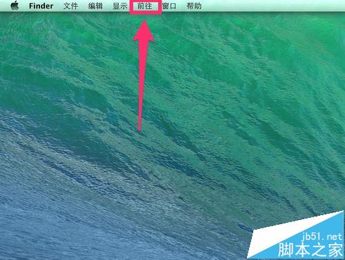 1、在mac桌面最上方的菜单栏中,找到“前往”这一项并点击一下。
