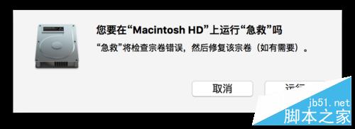 4、随后系统会提示是否要运行【急救】功能,点击【运行】以后继续,如图所示