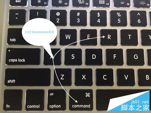 7、此外,有一些磁盘上的问题可能在系统运行中是无法修复的,此时可以重新启动mac 电脑,然后按下 【command+r】键不放,进入 recovery 修复。