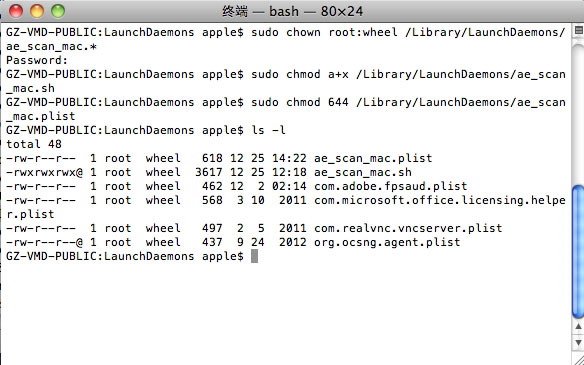 sudo chmod a+x /library/launchdaemons/ae_scan_mac.sh