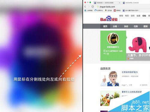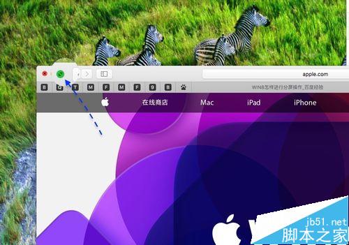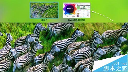 3、接下来我们要做的便是,把另一个应用程序拖动到顶部的全屏窗口中,实现分屏。在这里我把另外一个 qq 浏览器,直接拖到全屏显示的 safair 中。