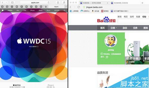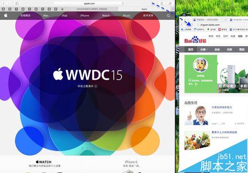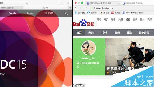 5、如下图所示,我把左边的 safari 窗口拉小了一些。若要退出分屏显示的话,此时只需要再点一下窗口左上角的绿色按钮,也或是按上键盘上的 esc 键即可。