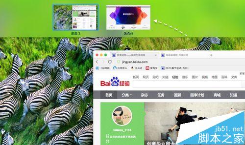2、这种情况适合之前我们已经在 mac 上打开了一个全屏显示的应用。如下图所示,把鼠标移动顶部,可以看到我当前有一个全屏显示的 safari 窗口。