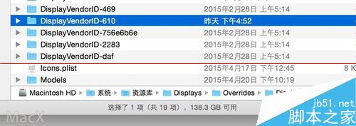 2、下面点击 finder 然后按快捷键 command-shift-g 输入 /system/library/displays/overrides/ 点击前往,你会看到文件夹内有结尾为 610的文件夹. 比如 displayvendorid-610