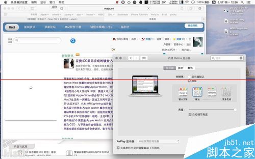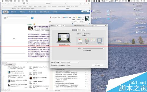 5、开启 1680x1050 的 hidpi 高清晰模式的效果. 明显桌面的操作区域要大了很多. 在12英寸的屏幕上, macx的网页只需要一半多的屏幕区域占用. 这对于做图或者剪辑的同学来说更大的工作区域可以有更多的可操作空间.