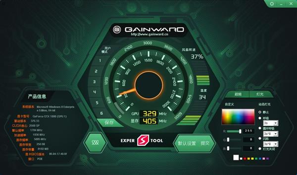 接下来就进系统了,技嘉和耕升都有专用的软件,技嘉的是监控为主还附带调整灯光效果的功能,耕升则是主要以显卡超频为主,另外还附带显卡的信仰灯和pcb上的灯光调节。