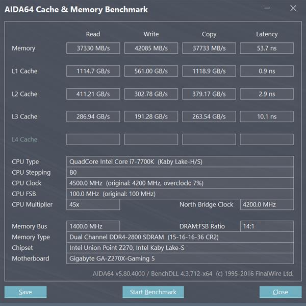 显卡部分的测试就完毕了,之后就是cpu和内存的一些简单的测试,因为主要都是玩游戏和网页比较多,所以就没太深入的去测试cpu和内存的性能了,而且7700k也算是目前主流cpu中比较高端的一款性能是不用怀疑的。