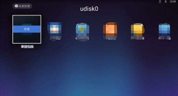 如果说系统没有自动检测到u盘,这时候也不要着急,请打开主界面的“应用”,点击“多媒体播放”,找到你的u盘设备,点开之后,就能发现下载好的泰捷视频安装文件,点击安装即可。