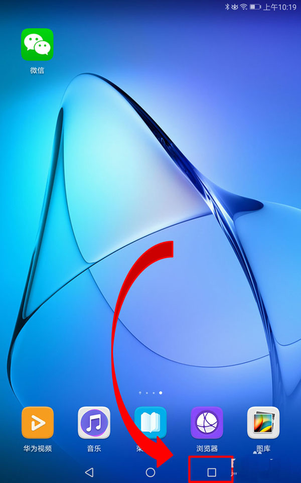 1、当分别打开微信和优酷视频以后,再次返回平板主界面,点击后台控制键。