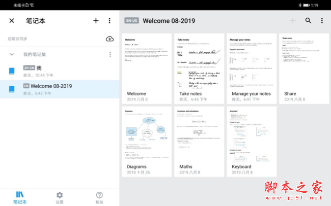 在nebo主界面上,左侧是笔记集,右侧则是相应的多个笔记的缩略图,查找起来也是非常方便。在软件中选择笔迹粗细、笔迹颜色也都很方便。