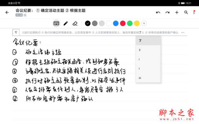 记录的时候,可以选择使用键盘或者手写笔书写,我更喜欢直接书写,在写的过程中,nebo就在一直识别书写的内容,识别率还是相当高的,像是“①“这样的标记符号都可以识别出来。