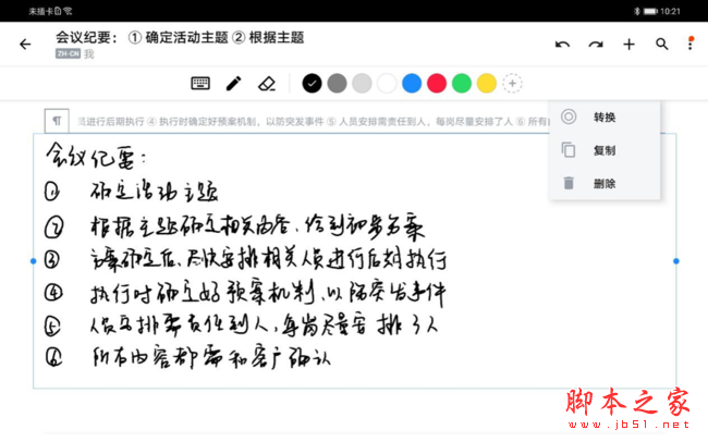 书写完毕之后,点击右上角的识别按钮,手写的文字就可以被识别成文稿,格式也与书写的形式相同。