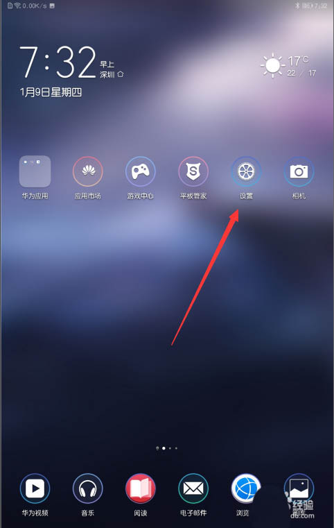 1、打开你的华为平板,在华为平板首页中找到设置,并且点击设置功能。