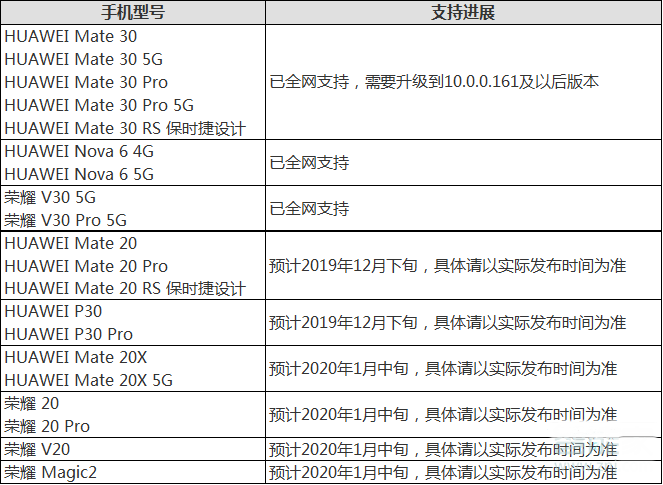 华为matepad pro多屏协同支持华为mate30、华为mate30pro、华为mate30rs保时捷设计、华为nove6、荣耀v30、荣耀v30pro等。