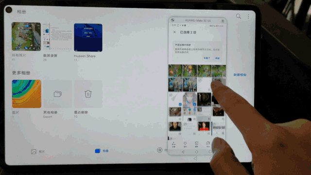 通过多屏协同传输文件,不仅是不需要线材和第三方软件,传输速度上也是qq等软件不能比拟的。就相当于你在一款设备之间来回拖拽,速度必然很快。此外,像用qq这种第三方软件传图片、视频,当你传上去后还得从qq上导到图库/文件夹等地方,而华为matepad pro多屏协同就不用,直接从手机图库拖拽图片到平板即可,简单省事,相当便捷。