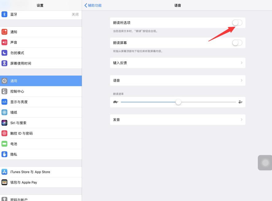 对于一些视力障碍的人群,可以通过ipad pro平板电脑的朗读功能来进行屏幕文字内容的自动阅读,以达到获取文本信息的目的,该怎么设置苹果ipad pro选中文本时怎样显示朗读按钮呢?下面我们就来看看详细的教程。
