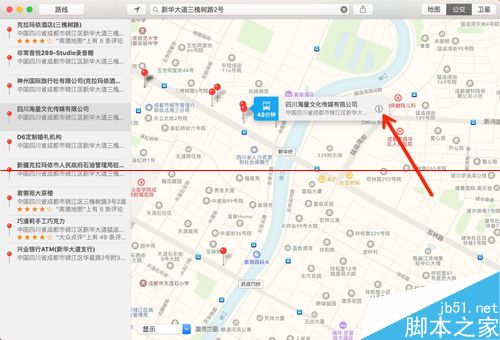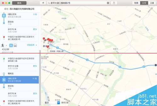 4、mac地图中,个人觉得设计得比较人性化的地方在于点入每条线路后,各个路段的标示