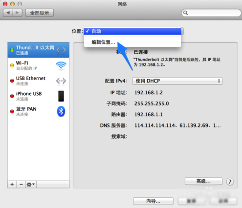 3、如果你平时有需要切换多个 dns 地址的需要,你还可以在网络的位置中添加多个配置文件。