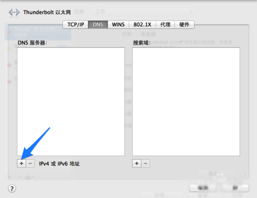 7、在 dns 设置窗口中,请点击左下方的“+”按钮,添加一个 dns 服务器地址,如图所示