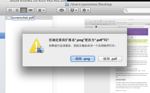 我想大家都了解文件名后面的后缀是来帮助操作系统辨识这是一个什么类型的文件的。在你双击这个后缀的文件的时候就会调用默认的应用程序来打开这个文件。但是确实有些时候文件名的后缀不是我们想要的那样,那么你可以通过两次点击文件名来重命名文件包括这个文件的后缀。但是如果你更改了文件的后缀名,系统会弹出一个对话框来让你确定你着实是要这么做。其实我们完全可以禁用掉这个讨厌的对话框。操作方法如下: