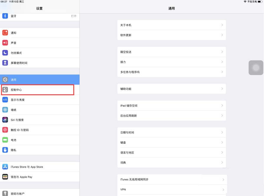 2、在ipad的设置页面当中,直接打开控制中心栏目